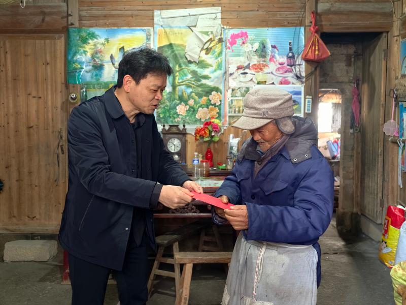 在结对帮扶户家中,詹志农一行与洪春茂等群众亲切交流,关切询问他们的身体健康状况、家庭收入、农业生产及日常生活情况,认真倾听记录他们反映的实际困难与需求,反复叮嘱注意防寒保暖,特别提醒要做好用煤、用电、用火安全防护,并送上春节慰问金和诚挚的新春祝愿。